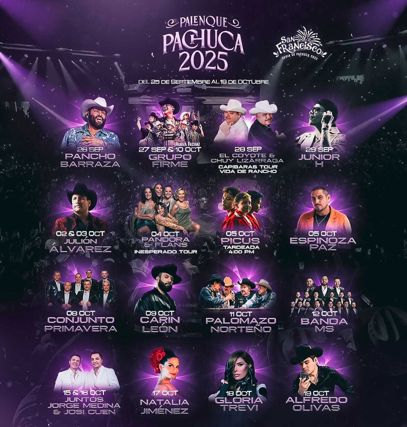 La Feria de San Francisco Pachuca 2025, una de las celebraciones más esperadas del estado de Hidalgo, se llevará a cabo en el Recinto Ferial de Pachuca de Soto. Durante casi un mes, este magno evento transforma la capital hidalguense en un vibrante centro de entretenimiento, tradición y cultura. Ofreciendo una mezcla de espectáculos de primer nivel, gastronomía, artesanía y diversión familiar, la feria rinde homenaje a San Francisco de Asís y es una plataforma para el talento local y artistas de talla nacional e internacional.