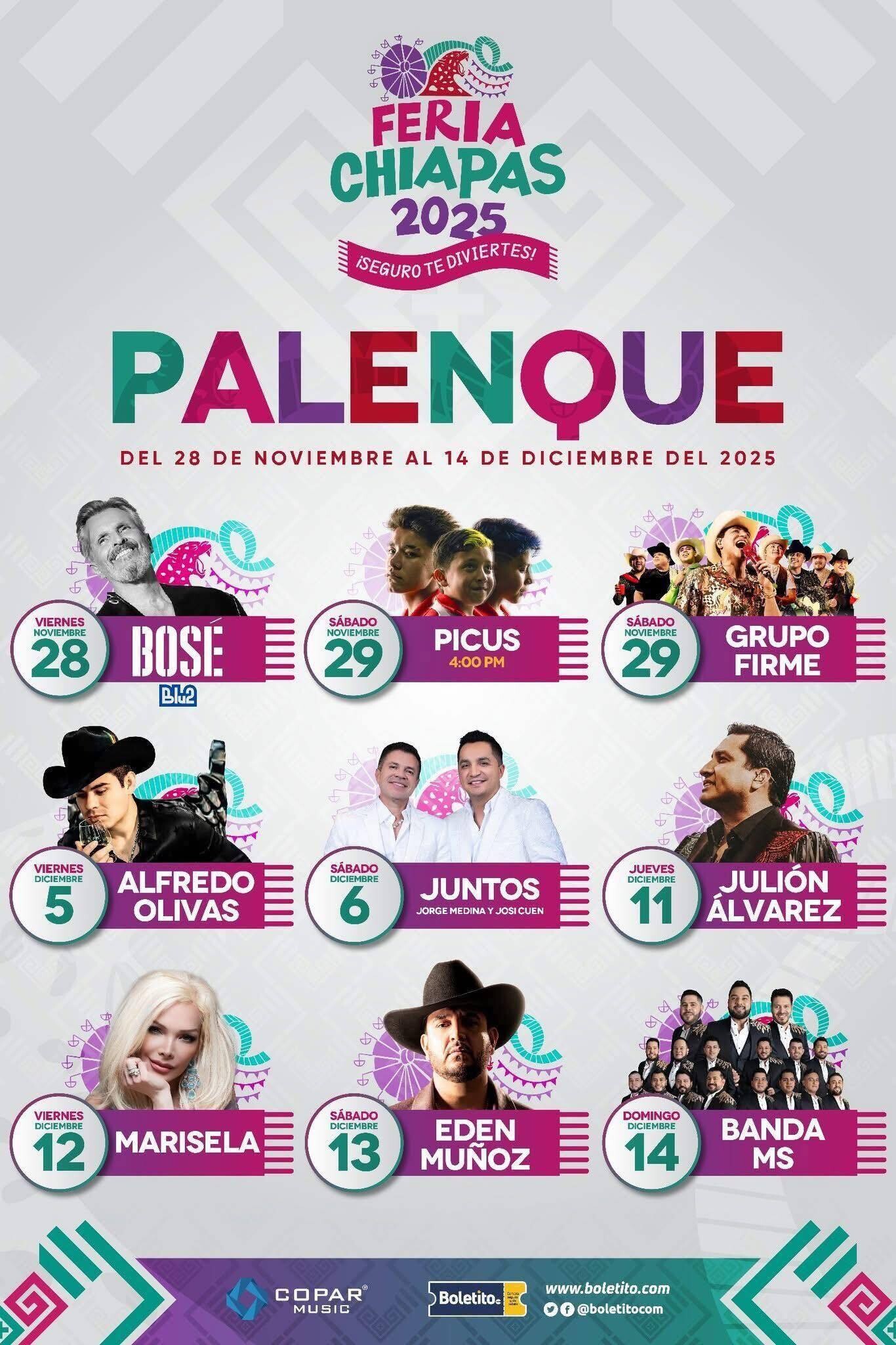 Espectáculos artísticos en el Palenque de la Feria Chiapas (Conciertos con Boleto):