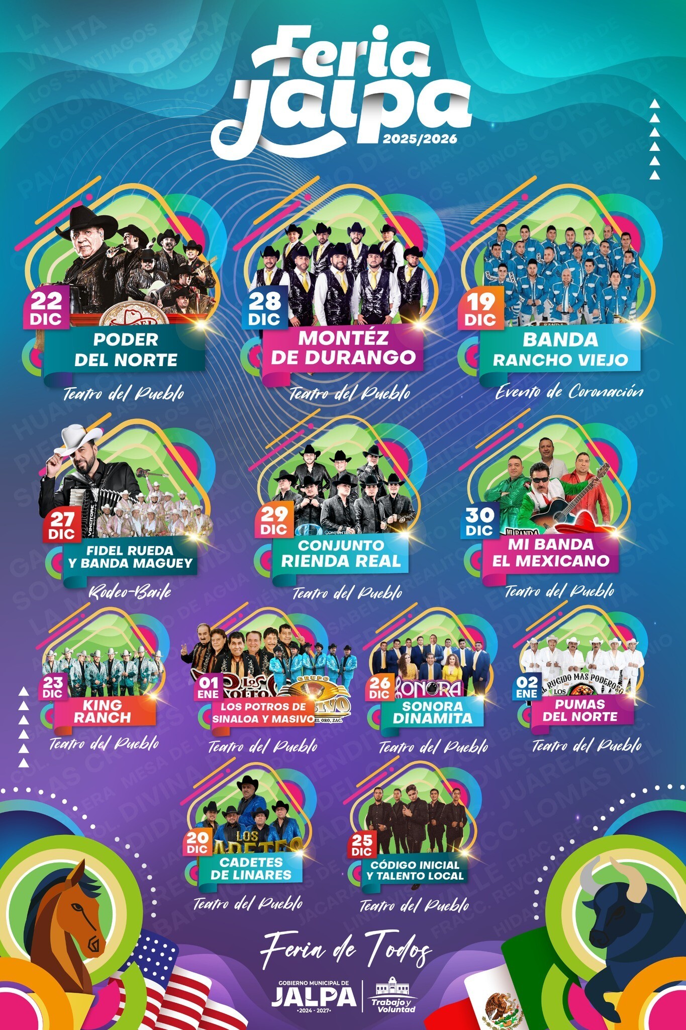 La Feria Regional Jalpa 2025–2026 es el festejo anual más significativo de la región, atrayendo a miles de visitantes y, en particular, a la comunidad migrante que regresa a su tierra natal durante el fin de año. El evento combina una variada cartelera de espectáculos masivos con tradiciones taurinas y ecuestres, siendo un motor de convivencia y cultura.